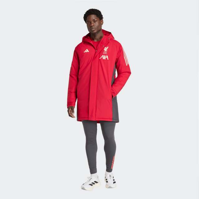 Visa din stolthet och håll dig varm under de kallaste dagarna. Denna jacka är en del av den officiella träningskollektionen med färger hämtade från hemmastället. Egenskaper som vattenavvisande material, bekväm vaddering och lång passform hjälper dig att möta väder och vind. Tillsammans med Liverbird-märket är denna parkas perfekt för alla "The Reds" under vintern.